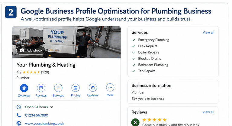 For a plumber, this matters because people are often searching urgently. If your profile looks incomplete, inactive, or unclear, you’re giving customers and Google less reason to trust you.
