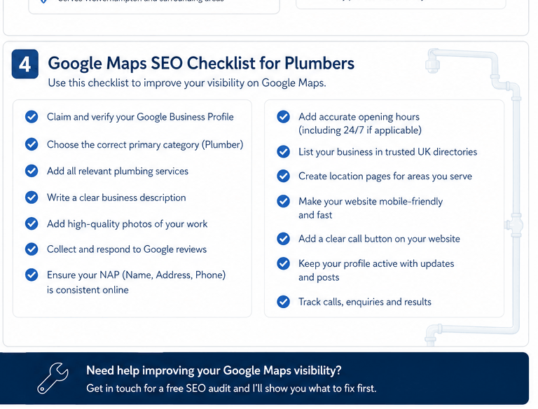 If your plumbing business isn’t getting enough enquiries from Google, I can help you identify the biggest issues.